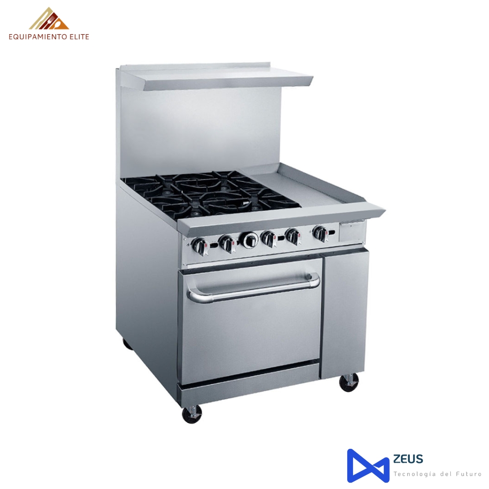 Gracias a su combinación de quemadores de alta potencia, plancha grill y horno grande, esta estufa es ideal para ambientes de cocina que requieren versatilidad y eficiencia.