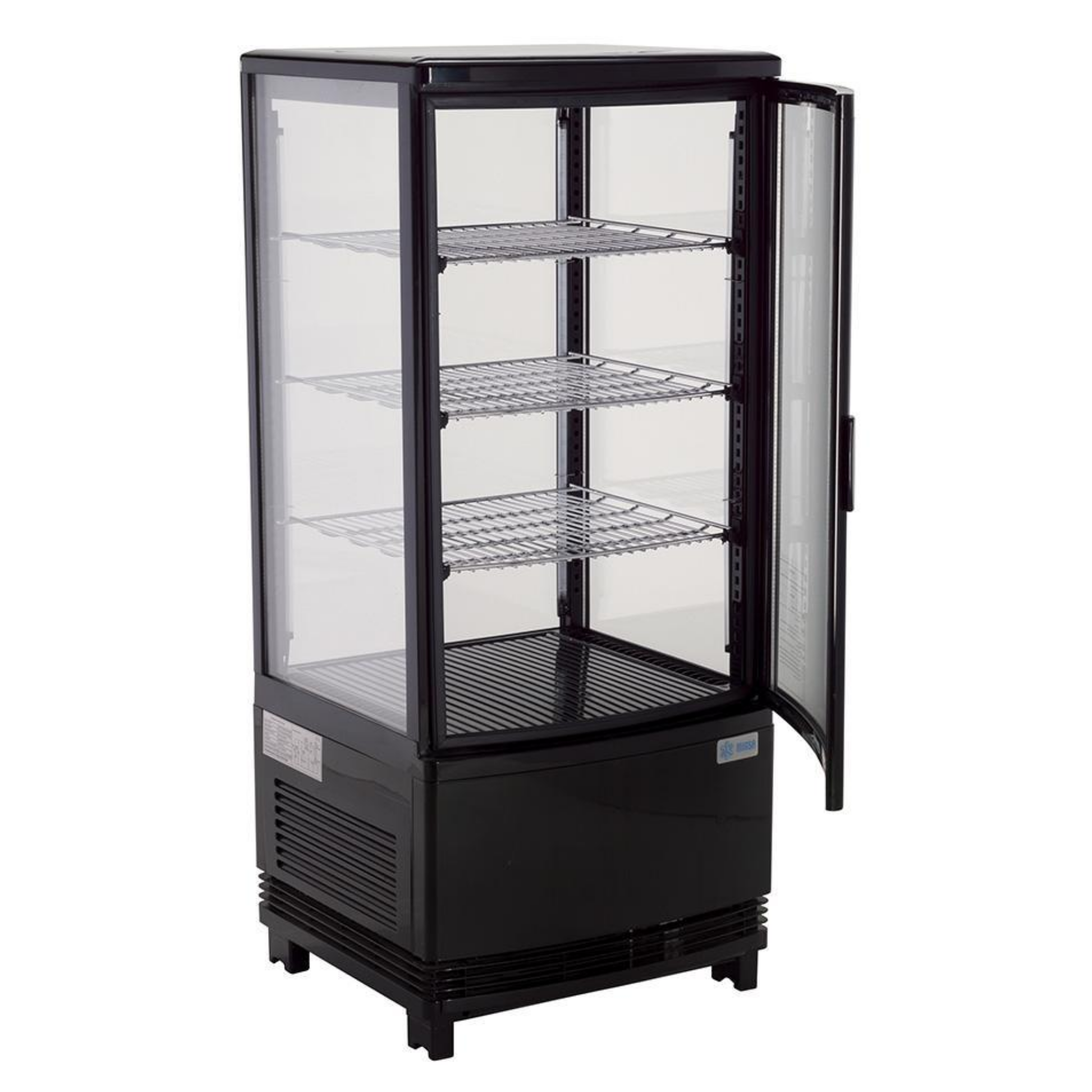 Este refrigerador tiene una capacidad de 82 L, perfecta para exhibir productos en espacios más pequeños pero con máxima eficiencia.