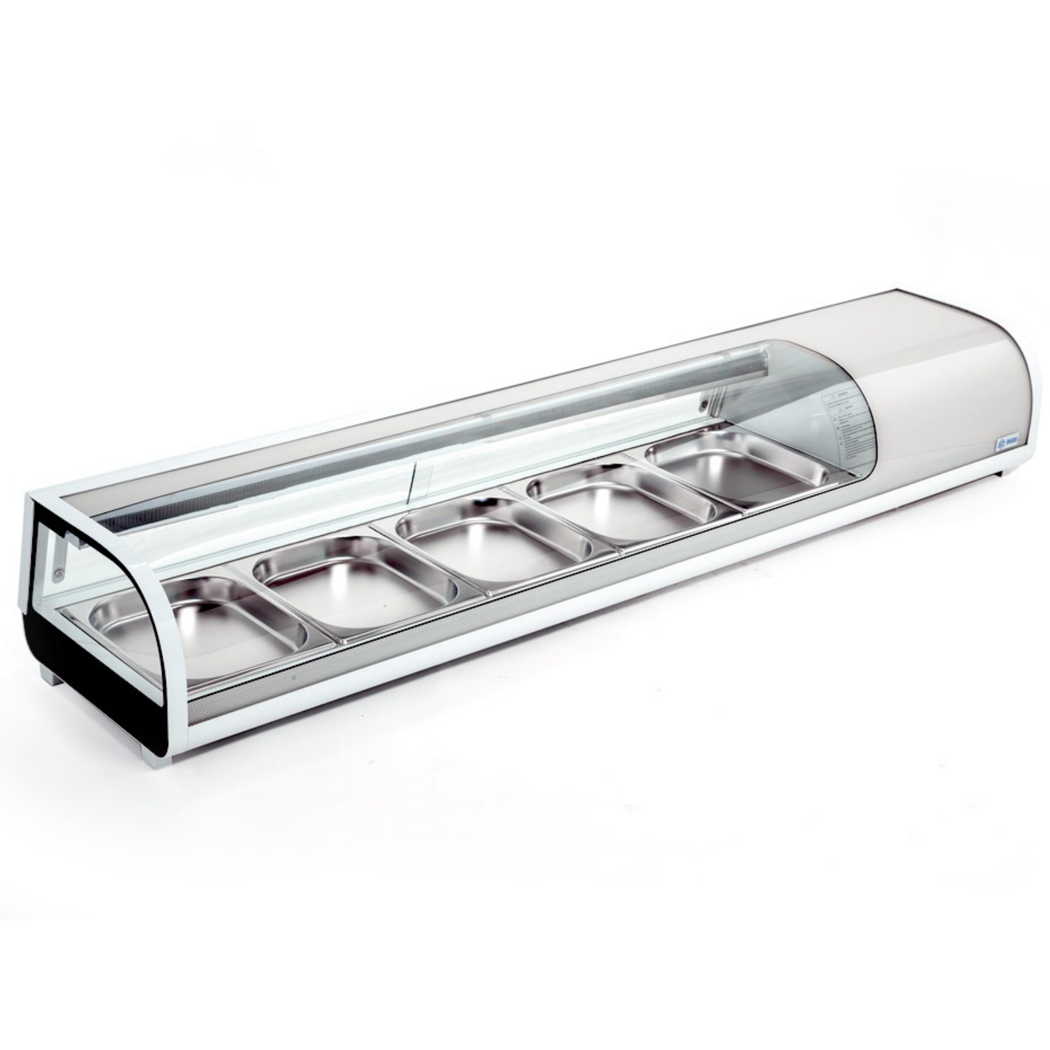 La capacidad de la vitrina es de 132 L, ideal para exhibir una mayor cantidad de sushi.